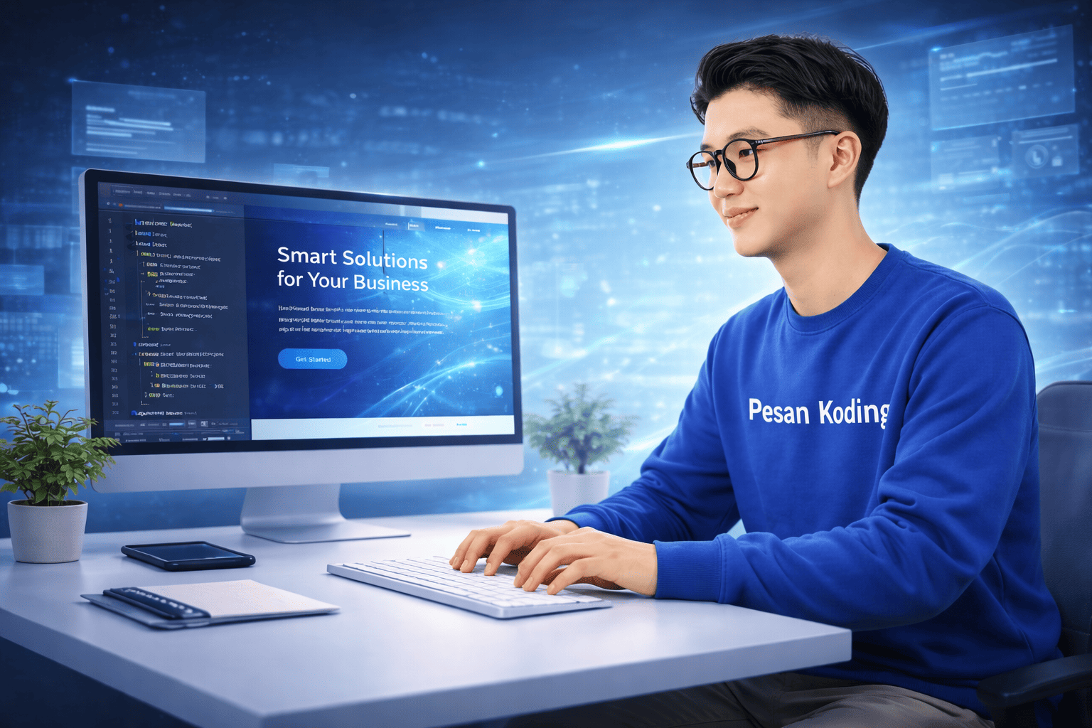 Pesan Koding adalah layanan profesional yang membantu pengerjaan tugas kuliah di bidang pemrograman serta menyediakan jasa pembuatan website dan aplikasi. Kami juga mendukung pelaku UMKM untuk memiliki website atau sistem digital agar bisnis dapat berkembang lebih modern, efisien, dan menjangkau lebih banyak pelanggan.